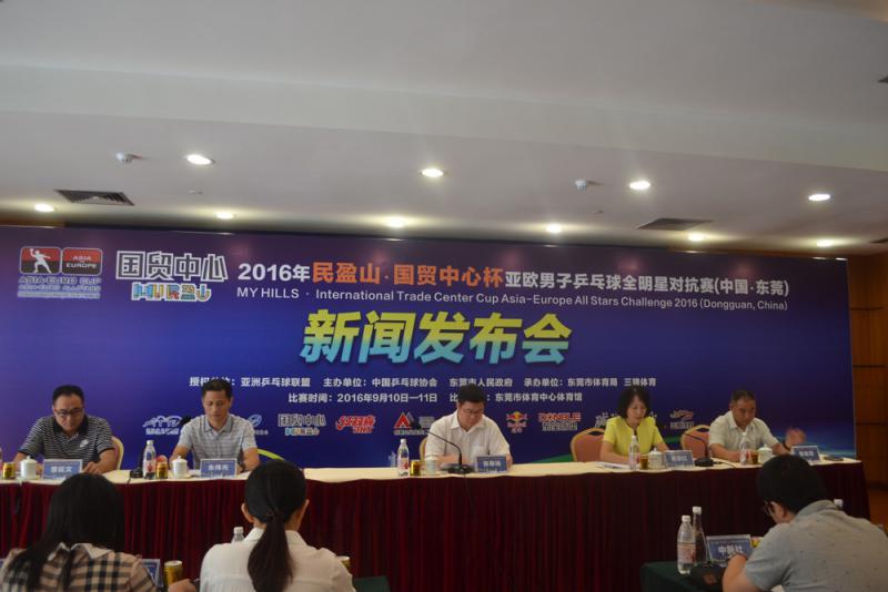 【大公報訊】記者敖敏輝東莞報道:在張家港承辦兩年後,亞歐男子乒乓球全明星對抗賽今年移師廣東東莞。30日,記者從2016年「民盈山.國貿中心杯」亞歐男子乒乓球全明星對抗賽新聞發布會上獲悉,經亞洲乒乓球聯盟授權,國家體育總局、廣東省體育局同意,今年的對抗賽將於9月10日至11日在東莞市體育中心體育館舉行,屆時,來自中歐10個乒協的10名頂尖高手將在東莞展開角逐。