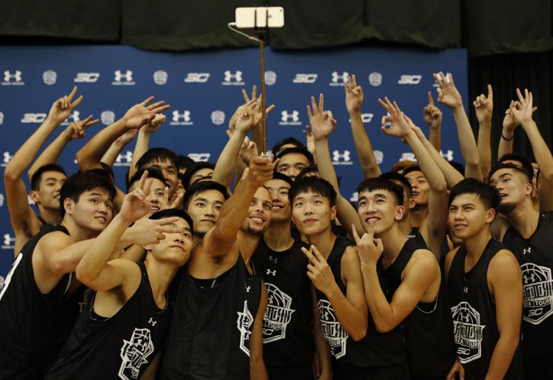 居里與球員自拍