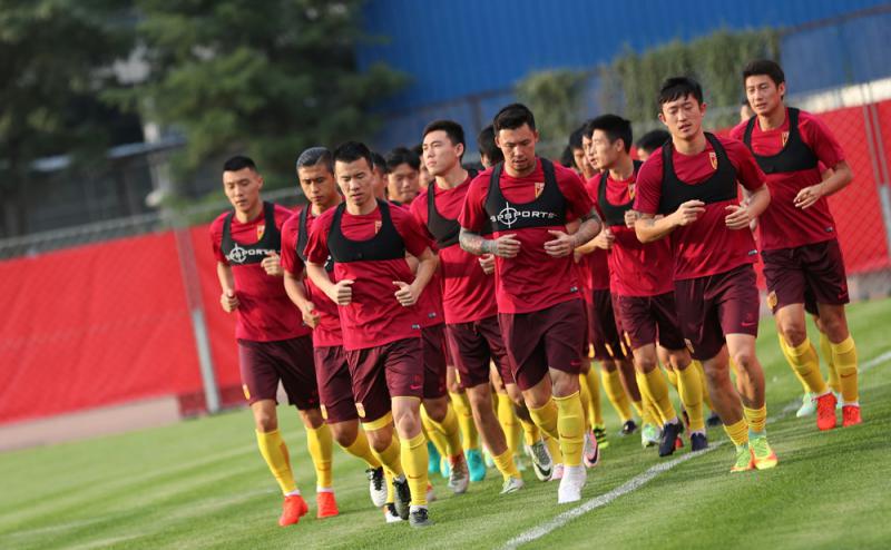 圖:國足在操練時緩步跑熱身\新華社