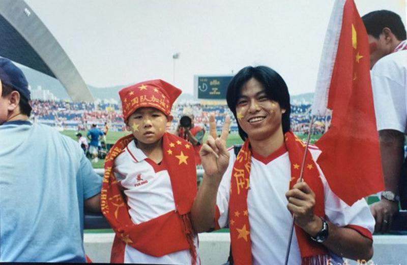 圖:張玉寧(左)十四年前現場為國足打氣