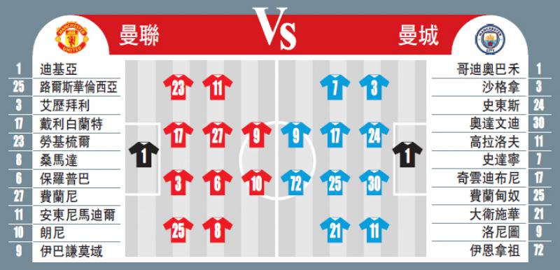 【大公報訊】綜合法新社、每日郵報、ESPN FC、香港賽馬會足智彩報道:「曼」眾矚目的新面貌英超曼徹斯特打吡大戰、「紅魔鬼」曼聯主場鬥曼城今晚上演。雙曼暫時皆三戰全勝,今戰曼聯幾近「夫添」,相反「藍月亮」曼城卻有主力射手阿古路停賽,形勢無疑是曼聯佔上風。(樂視體育Now英超一台、樂視體育香港應用程式今晚7時30分直播)