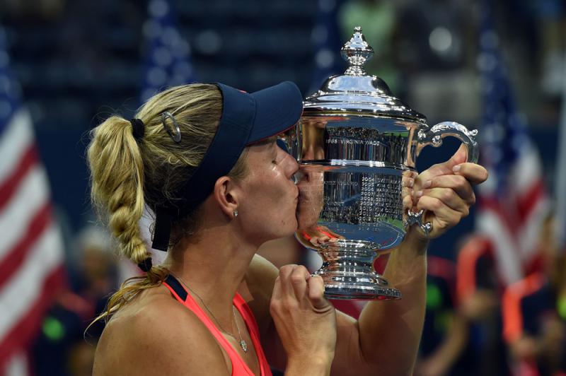 圖:卡芭首奪美網女單錦標,深情地親吻獎杯 法新社