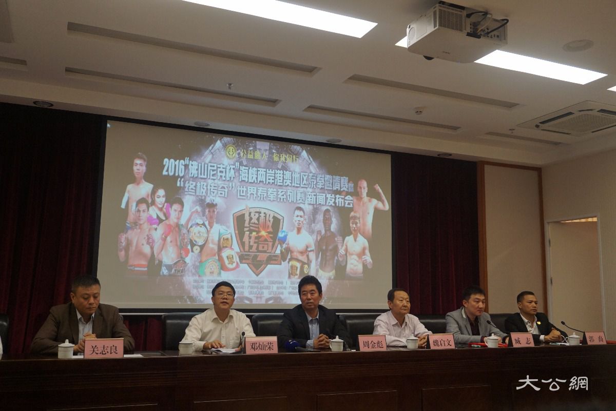 2016年「佛山尼克杯」海峽兩岸港澳地區泰拳邀請賽暨「終極傳奇」世界泰拳金腰帶爭霸賽由國家體育總局武術管理中心、佛山市體育局主辦,廣東金甲搏擊俱樂部承辦,香港卓越環球集團有限公司全程贊助。大賽是兩岸四地泰拳項目的一次大交流和大檢閱,旨在弘揚武術文化,促進海峽兩岸及港澳地區泰拳運動項目發展。同時,構建兩岸四地體育搏擊事業的交流平台,加強合作交流。
