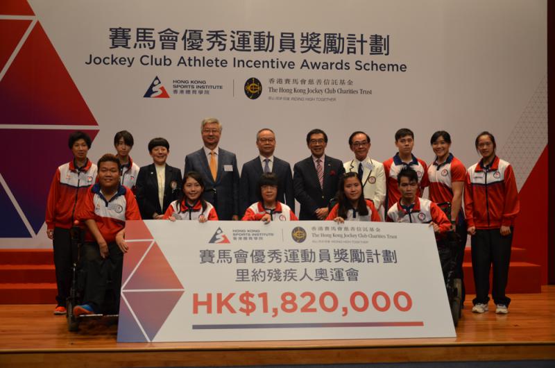 香港體育學院昨舉行頒獎禮,再度透過「賽馬會優秀運動員獎勵計劃」表彰在里約殘疾人奧運會表現出色的香港運動員,其中男子S14級200米自由泳冠軍鄧韋樂以一枚金牌和入圍男子S14級100米背泳八強的成績,獲得個人最多的42萬5千元獎金。\大公報記者 游夢江