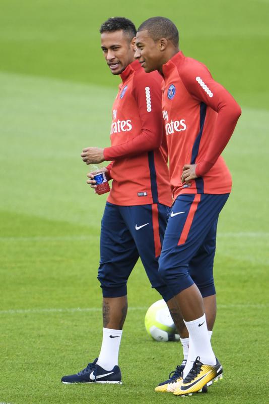 圖:尼馬(左)與基利安麥巴比一起參與聖日耳門的操練\法新社