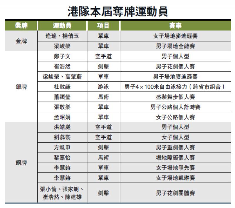 本屆全運港團共獲16面獎牌,可說大豐收。