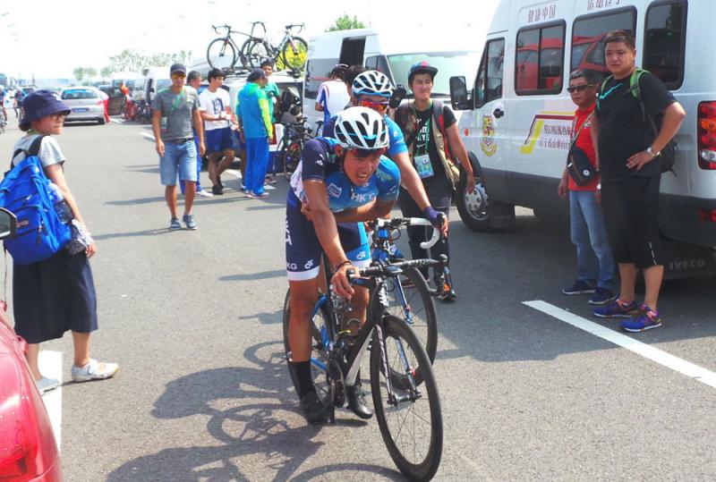 【大公報訊】記者趙大明報道:於前天在單車男子公路個人賽中受傷抽筋的香港單車隊代表梁峻榮,昨天身體已經恢復,並來到女子公路個人賽現場為隊友打氣。