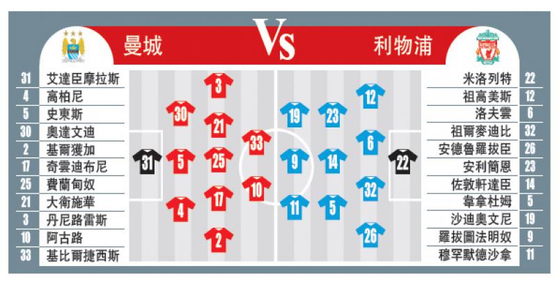 雙方開季同樣三戰得七分。曼城上場作客補時才驚險地擊敗般尼茅夫,惟入波的史達寧卻因慶祝行為不當而領紅被逐,今戰無緣「倒戈」,多少影響球隊調動。此外,巴西國腳射手加比爾捷西斯、中場費蘭甸奴、門將艾達臣摩拉斯、阿根廷射手阿古路、後衛奧達文迪及智利門將哥迪奧巴禾都從南美遠道歸來,體能或受影響,禍不單行是中堅兼隊長高柏尼近日又小腿受傷,不知能否披甲。