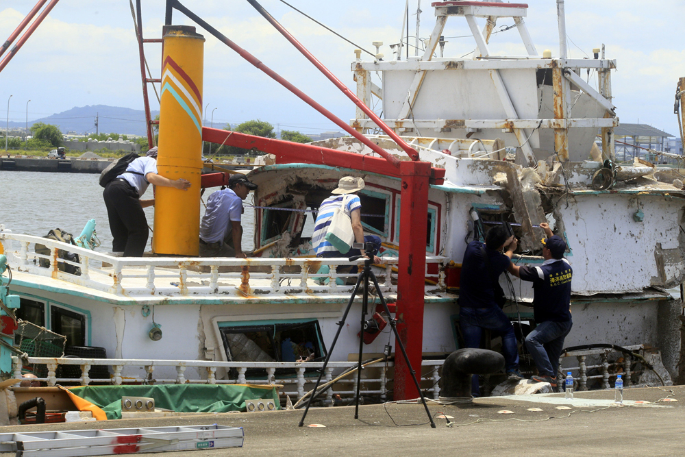 圖:台灣海軍誤射飛彈貫穿「翔利昇號」漁船。圖為相關部門日前在漁船採證\資料圖片
