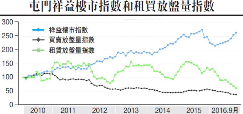 或者大家還未知道美國量化貨幣帶起的「資產荒」有多厲害,第一次出辣招的2010年11月與現在比較,屯門買賣二手放盤量總共少了66%,二手放租盤亦少了39%,一個市場少了這個數目,不單只價格不能不升,而且亦難以彌補。