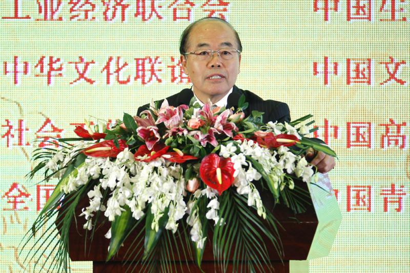 圖:全國台灣研究會執行副會長兼秘書長周志懷3日在兩岸和平發展論壇上致辭\中新社