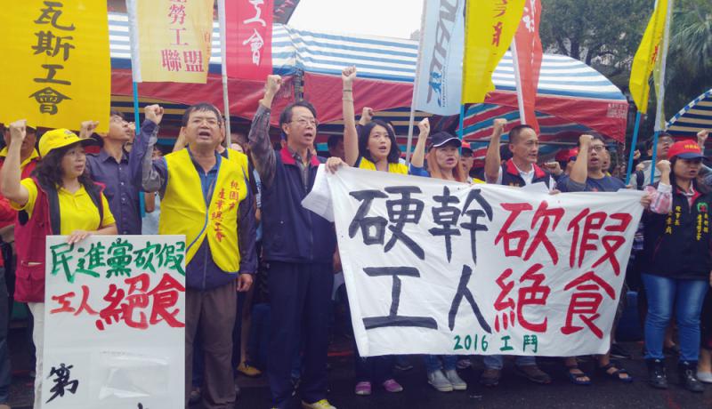 台灣多個勞工團體4日開始發動絕食抗議,反對執政當局砍7天假等措施。