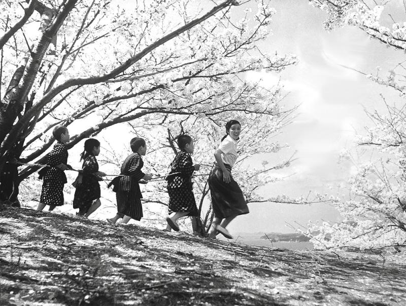 片中大石老師的男學生,小小年紀,部分已明言長大後要做軍人。原因很簡單,只有做軍人才能擺脫貧困,出人頭地。而結果是,她的男學生不論是自願還是被徵召,都上了戰場,僅有少數人全身而退,甚至連大石的丈夫也在海外陣亡。有趣的是,這部電影除了在當時大受歡迎,也是最早被引進內地的日本電影之一,早在上世紀五十年代,就有譯製的版本上映。
