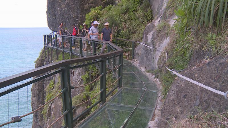 花蓮縣豐濱鄉「天空步道」,位在「親不知子斷崖」峭壁上,採用強化透明玻璃打造20公尺路段的棧道。