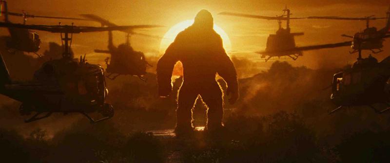 以上是美國傳奇電影的怪獸電影系列第二彈《金剛:骷髏島》的故事,和該系列的第一集《哥斯拉》一樣,把巨大怪獸的傳說插入真實歷史的時間軸內。相比起哥斯拉出現在當下時空,這部電影跳回四十多年前的越戰時期,風格也大量模仿和越戰有關的電影,如直升機飛越叢林,天上降下的炸彈,當然還有好戰的美軍。