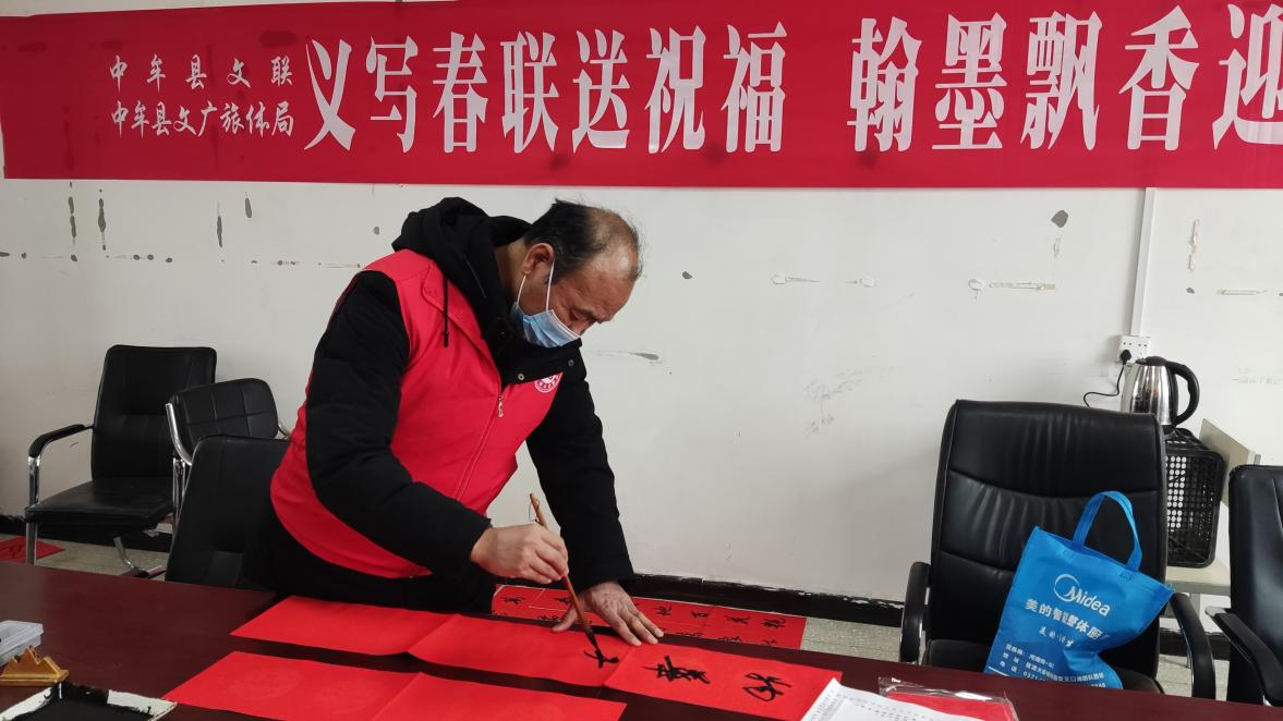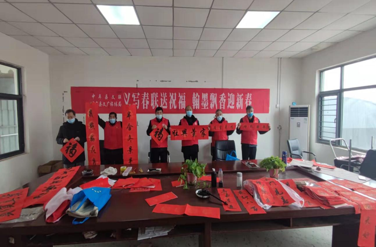 寫春聯、貼春聯是中國農曆新年的傳統風俗,寄託着千家萬戶對新年的滿滿期待。為弘揚優秀傳統文化,讚美新時代,祈福賀新春,營造溫馨祥和的節日氣氛。2022年1月26日,由中牟縣文學藝術界聯合會、中牟縣文化廣電旅遊體育局主辦,中牟縣人民文化館承辦的「義寫春聯送祝福 翰墨飄香迎新春」活動走進官渡鎮惠莊村,為村民送上節日祝福。