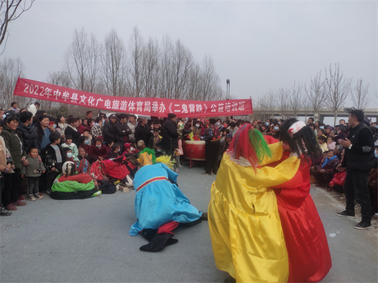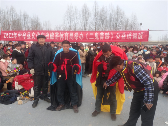 過大年,趕廟會,看雜耍是數百年來老百姓們過年的傳統習俗。為推動非物質文化遺產保護高質量發展,由中牟縣文化廣電旅遊體育局組織開展的「2022年《二鬼背跌》公益培訓班」在賈魯河畔火熱上演。