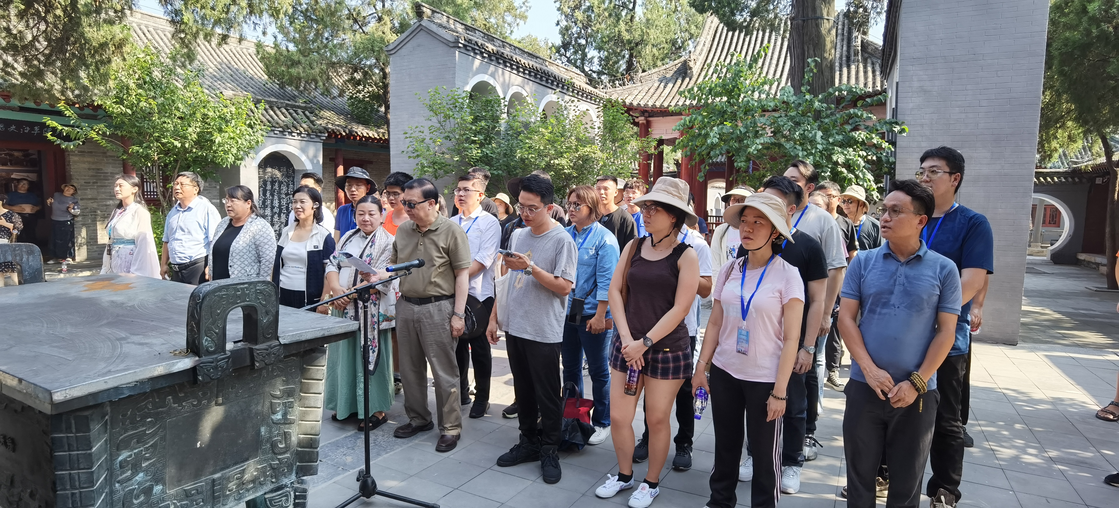 當日下午,訪問團還參觀了羑裏城。羑裏城是周文王推演周易之地,是風靡全球的周易文化發祥地。這裏牌樓巍峨、殿閣儼然、古柏參天,透露出歷史的古樸凝重,建有演易坊、山門、周文王演易台、古殿基址,還有《周文王羑裏城》《禹碑》《文王易》等碑刻十餘通,對於研究《周易》和歷史、書法,都具有重要的史料價值。