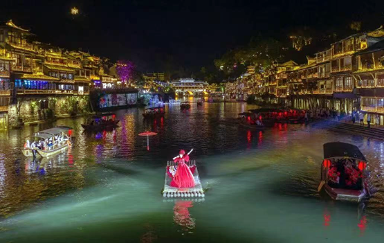「燈火裏的鳳凰,青春婀娜。燈火裏的中國,胸懷遼闊!燈火燦爛的中國夢,燈火蕩漾着心中的歌......」文化自信是一個國家、一個民族發展中最深沉、最持久的力量。精神是一個民族賴以長久生存的靈魂,唯有精神達到一定的高度,中華民族才能在歷史的洪流中屹立不倒、奮勇向前。華燈初上,風情萬種的古城,氤氳迷離的空氣,幾多歌唱,幾多歡笑,化作了一個個浪漫嫵媚的「鳳凰夢」,吸引着全世界慕名而來的遊客。